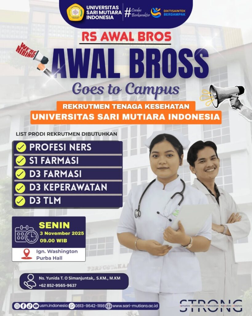 Rumah Sakit Awal Bros kini hadir di Universitas Sari Mutiara Indonesia melalui kegiatan Awal Bros Goes to Campus