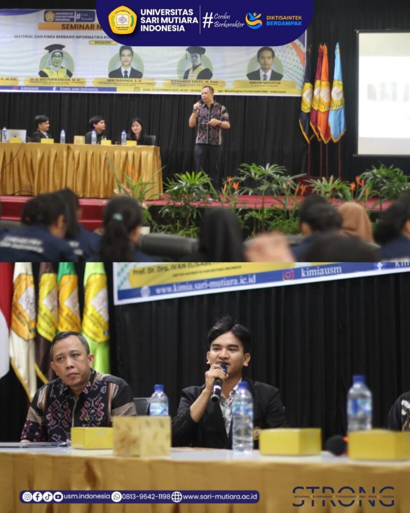 USM-Indonesia | Program Studi Kimia Universitas Sari Mutiara Indonesia melaksanakan kegiatan Seminar Kimia V bertema “Material dan Kimia Berbasis Informatika Kolaborasi Multidisiplin Menuju Sains Masa Depan” bertempat di Ign. Washington Purba Hall USM-Indonesia, Rabu (12/11/2025).