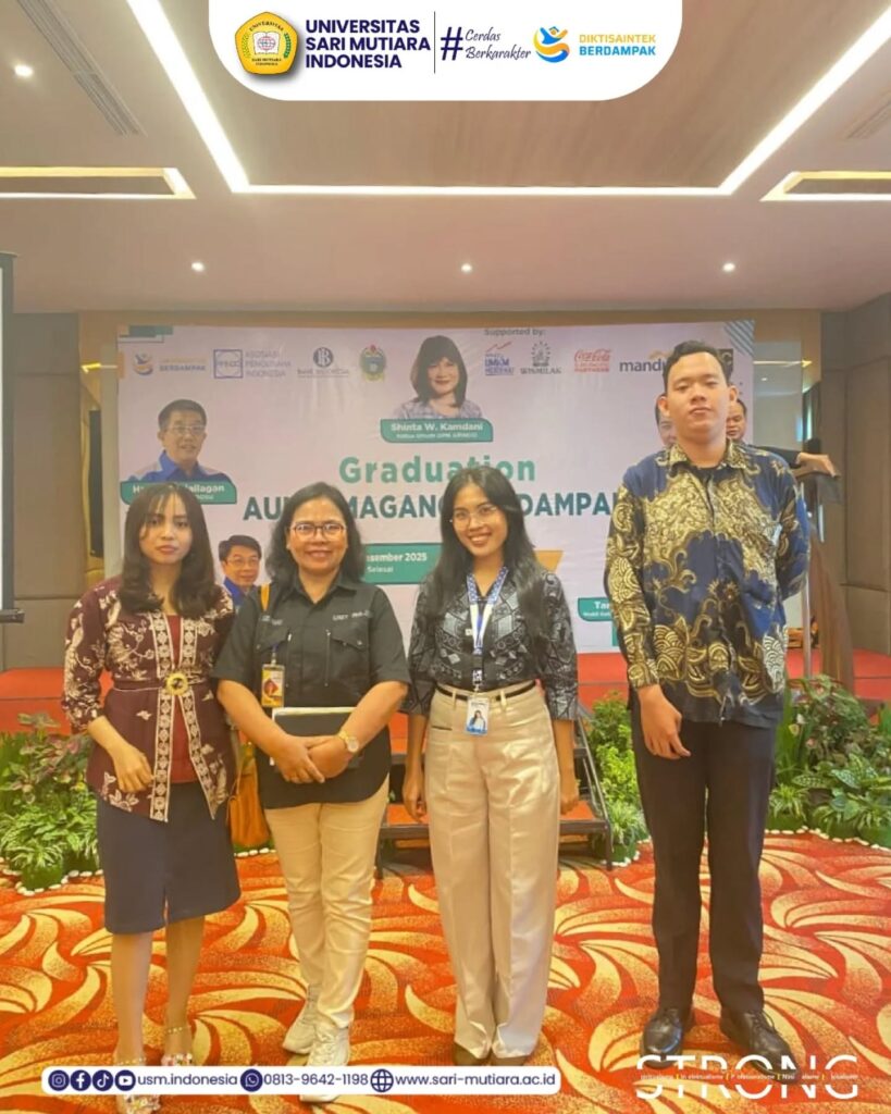 USM-Indonesia | Universitas Sari Mutiara Indonesia menghadiri undangan acara Gradution Program AUM bersama Magang Berdampak yang diselenggarakan oleh Dewan Pimpinan Provinsi Asosiasi Pengusaha Indonesia (APINDO) Sumatera Utara, di Kantor Perwakilan BI Provinsi Sumatera Utara, Jl. Balai Kota No. 4 Medan, Rabu (10/12/2025).